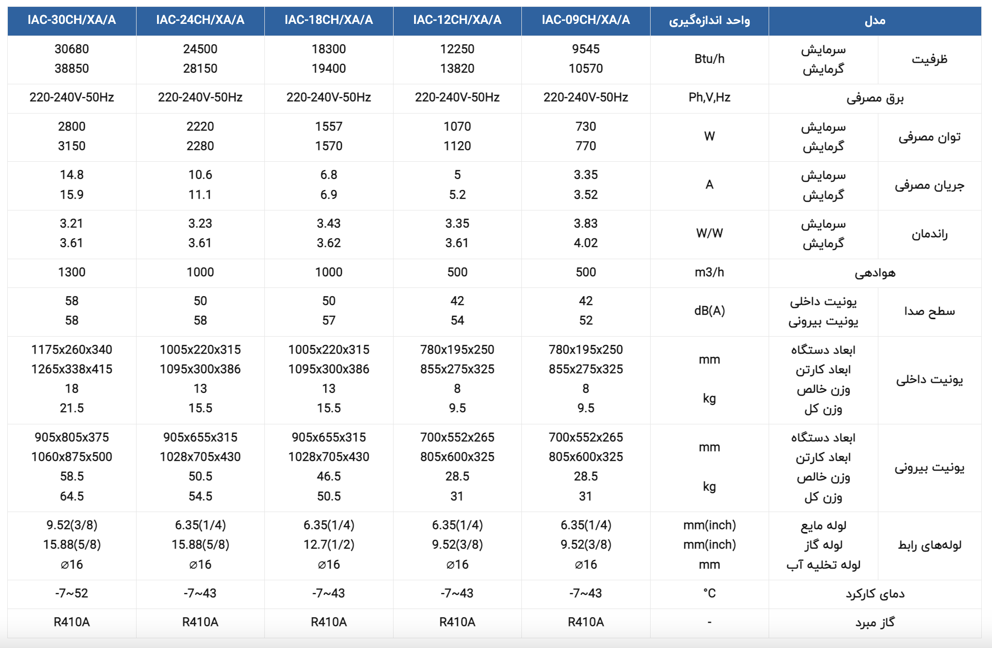 نوع گاز (مبرد): R۴۱۰A